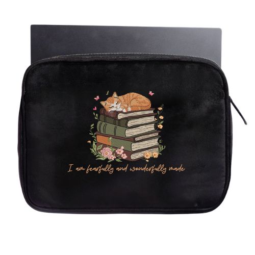 Carry your device with purpose using this gospel-themed embroidered laptop sleeve, thoughtfully designed to blend faith, protection, and everyday elegance. Crafted from soft velvet fabric and reinforced with polyester and foam interfacing, it provides cushioned protection while maintaining a refined, premium feel.